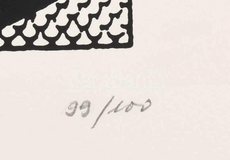 Joseph Kádár (1936-2019): Dualista kompozíció. Szitanyomat, papír, jelzett, számozott (99/100), hátoldalán a művész bélyegzőjével, 37×55 cm / Joseph Kádár (1936-2019): Dualist composition. Screenprint on paper, signed, numbered