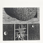 Joseph Kádár (1936-2019): Űrkép (‘Espacegraphique’), 1987. Szitanyomat, papír, jelzett, számozott (45/100). Hátoldalán a művész pecsétjével, 35,5×40 cm