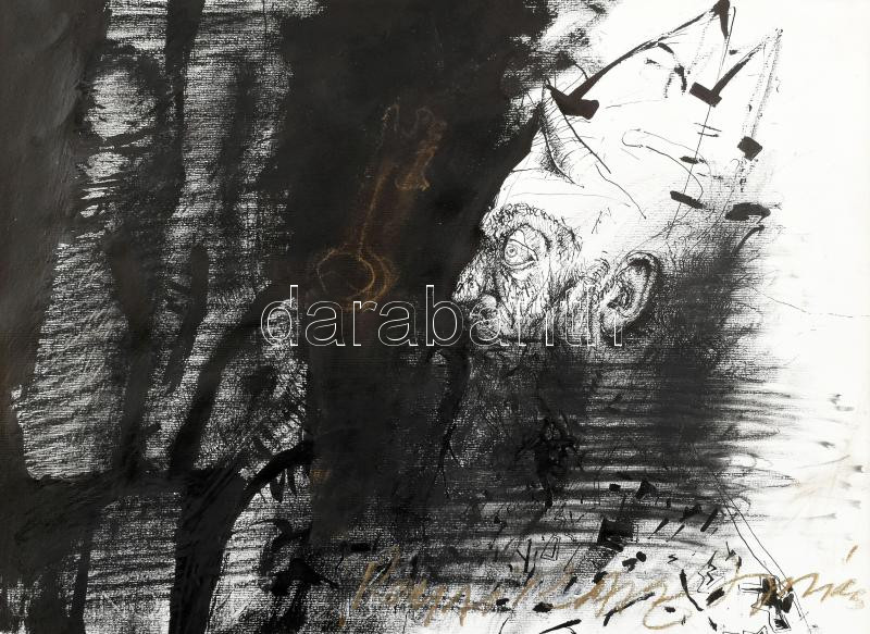 Jovián György (1951-): Római… (részben olvashatatlan címmel. Kréta, tus, papír. Jelzett. paszpartuban, 23×31 cm.<a href="https://www.darabanth.com/hu/gyorsarveres/436/kategoriak~Festmenyek-es-grafikak/Festmenyek-es-grafikak~500001/Jovian-Gyorgy-19