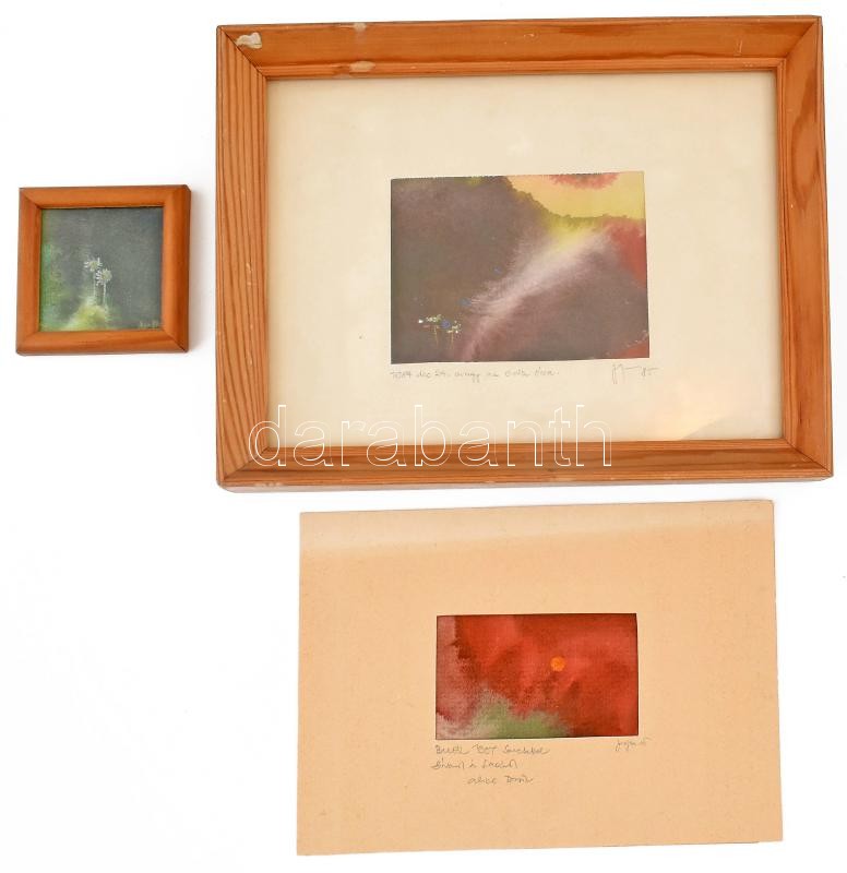 Jozefka Antal (1935-): 3 db kép. Vegyes technika, papír, jelzettek, 9×12 cm-ig + kiállítási katalógus<a href="https://www.darabanth.com/hu/gyorsarveres/428/kategoriak~Festmenyek-es-grafikak/Festmenyek-es-grafikak~500001/Jozefka-Antal-1935-3-db-kep-V