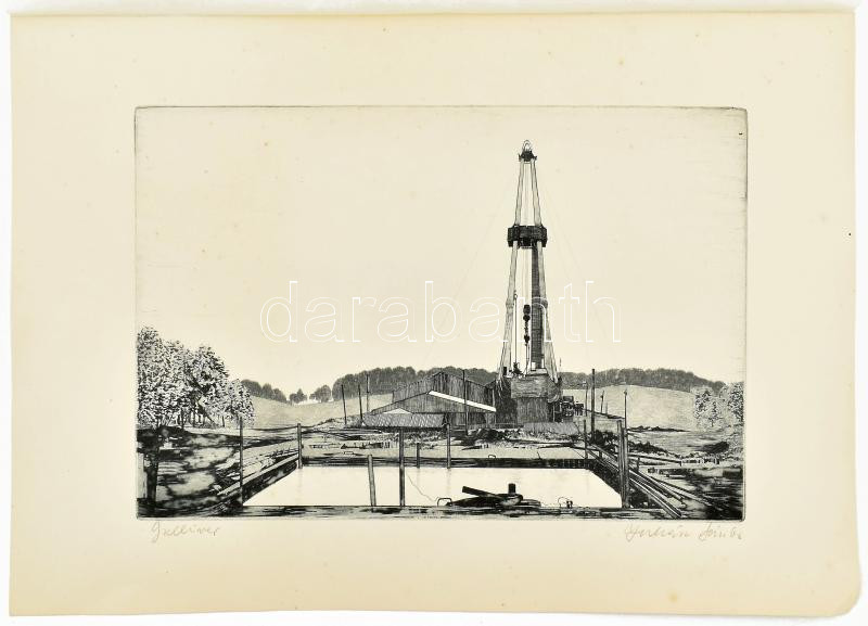 Juhász Sándor (1934-1993): Gulliver. Rézkarc, papír, jelzett, hártyapapírral, 20×29 cm<a href="https://www.darabanth.com/hu/gyorsarveres/437/kategoriak~Festmenyek-es-grafikak/Festmenyek-es-grafikak~500001/Juhasz-Sandor-1934-1993-Gulliver-Rezkarc-pap