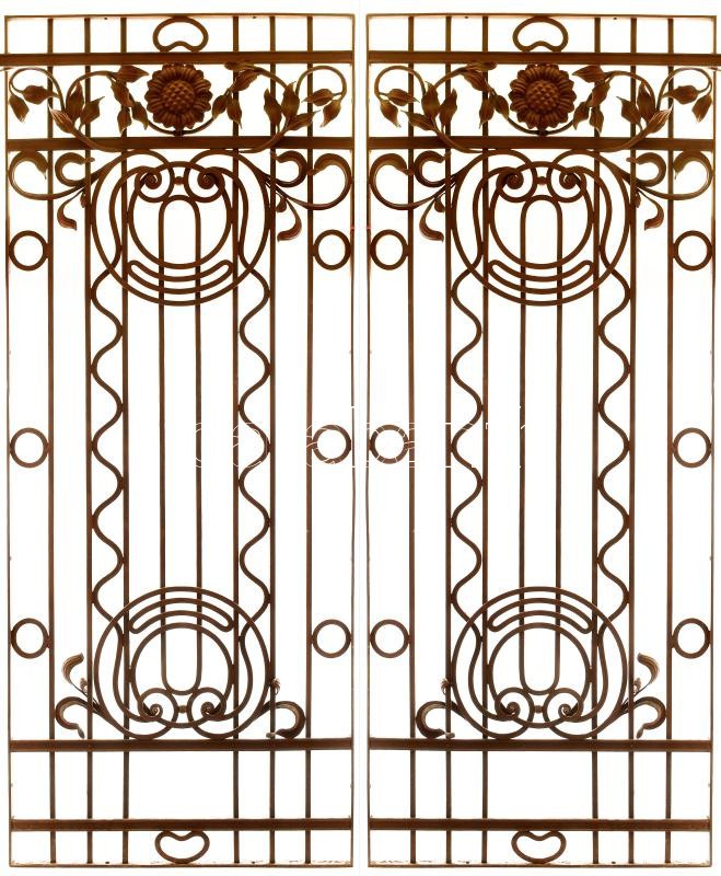 Jungfer Gyula (1841-1908) műlakatos, díszműkovács, vasárugyáros: 2 db szecessziós rács, kovácsoltvas, szép állapotban, homokfúvás után alapozófestékkel kezelve. 152×63 cm / Kizárólag személyes átvétel!!!