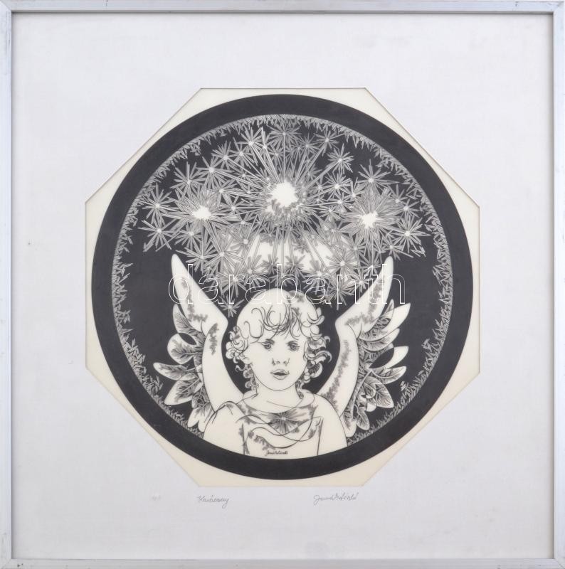 Jurcsák László: Karácsony. Tus, papír. Jelzett. Üvegezett alumínium keretben, d: 27,5 cm<a href="https://www.darabanth.com/hu/gyorsarveres/426/kategoriak~Festmenyek-es-grafikak/Festmenyek-es-grafikak~500001/Jurcsak-Laszlo-Karacsony-Tus-papir-Jelzett