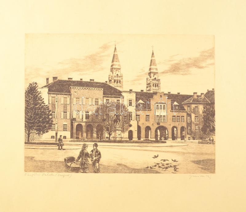 Jurida Károly ( 1935 – 2009 ): Püspöki palota, Szeged. Rézkarc, papír. Keret nélkül. Feltekert 29,5×38,5cm<a href="https://www.darabanth.com/hu/gyorsarveres/427/kategoriak~Festmenyek-es-grafikak/Festmenyek-es-grafikak~500001/Jurida-Karoly-1935-2009-