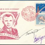 Jurij Alekszejevics Gagarin (1934-1968) és Valentyina Tyereskova (1937- ) szovjet űrhajósok aláírásai emlékborítékon / / Autograph signature of Yuriy Alekseyevich Gagarin (1934-1968) and Valentina Tereshkova (1937- ) Soviet astronauts on