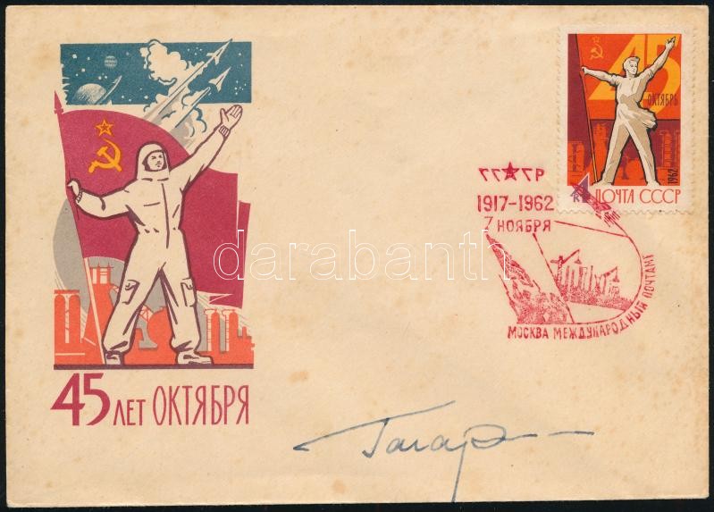 Jurij Alekszejevics Gagarin (1934-1968) szovjet űrhajós autográf aláírása alkalmi borítékon / Autograph signature of Yuriy Alekseyevich Gagarin (1934-1968) Soviet astronaut on special cover<a href="https://www.darabanth.com/hu/gyorsarveres/418/kateg