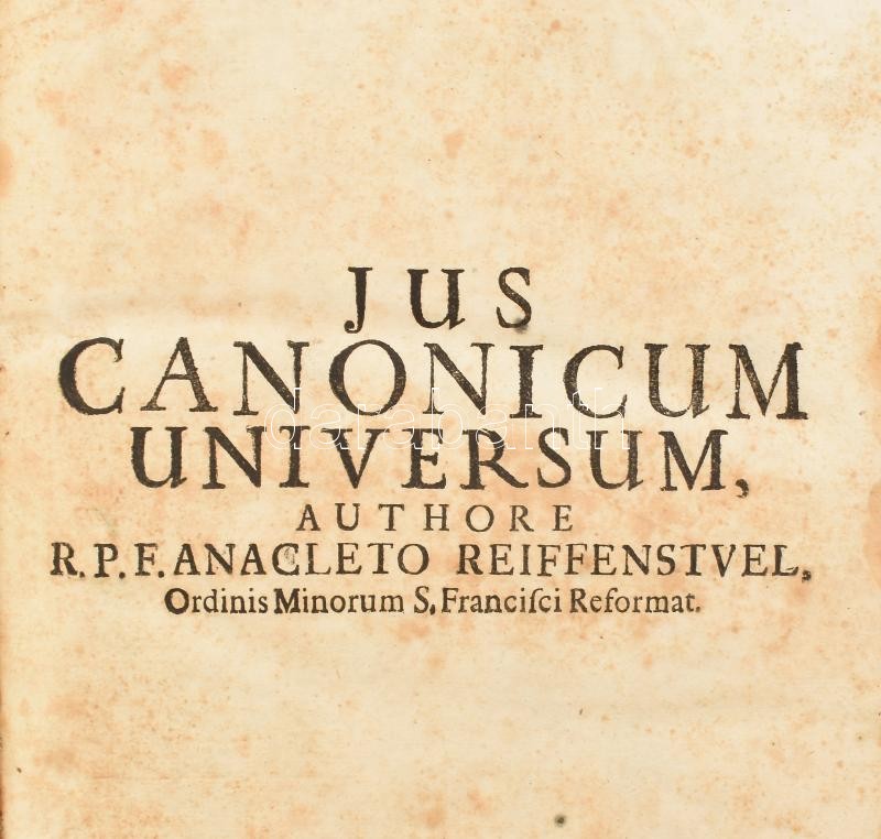 Jus Canonicum Universum: Clara Methodo Ivxta Titulos Qvinqve Librorvm Decretalium In Quaestiones … Viduae, 1702. Sumptibus Joannis Jacobi Remy, Korabeli kopott egészbőr kötésben, utolsó kb 60 lap szélén, szöveget nem érintő egérrágás