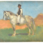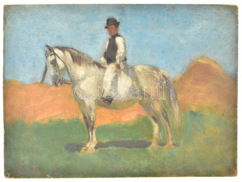 Juszkó Béla (1877-1969): Lóháton. Olaj, vászon, kartonon, jelezve balra lent, 25×33,5 cm