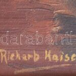 Kaiser, Richard (1868-1941): Vízparti táj. Olaj, vászon. Jelzett. Sérült. Dekoratív, sérült fakeretben. 53×66 cm