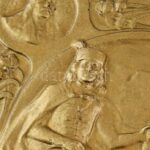 Kallós Ede (1866-1950): II. Rákóczi Ferencet ábrázoló szecessziós dombormű / relief, 1900-as évek eleje. Festett öntöttvas, fa alapra rögzítve, falra akasztható, a fa néhány helyen kissé sérült, 34×34 cm, teljes méret: 43,5×43,5