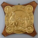 Kallós Ede (1866-1950): II. Rákóczi Ferencet ábrázoló szecessziós dombormű / relief, 1900-as évek eleje. Festett öntöttvas, fa alapra rögzítve, falra akasztható, a fa néhány helyen kissé sérült, 34×34 cm, teljes méret: 43,5×43,5