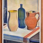 Kántor Andor (1901-1990): Csendélet, 1933. Akvarell, papír. Jelzett. Üvegezett fakeretben. 60×47,5 cm<a href="https://www.darabanth.com/hu/gyorsarveres/427/kategoriak~Festmenyek-es-grafikak/Festmenyek-es-grafikak~500001/Kantor-Andor-1901-1990-Csende