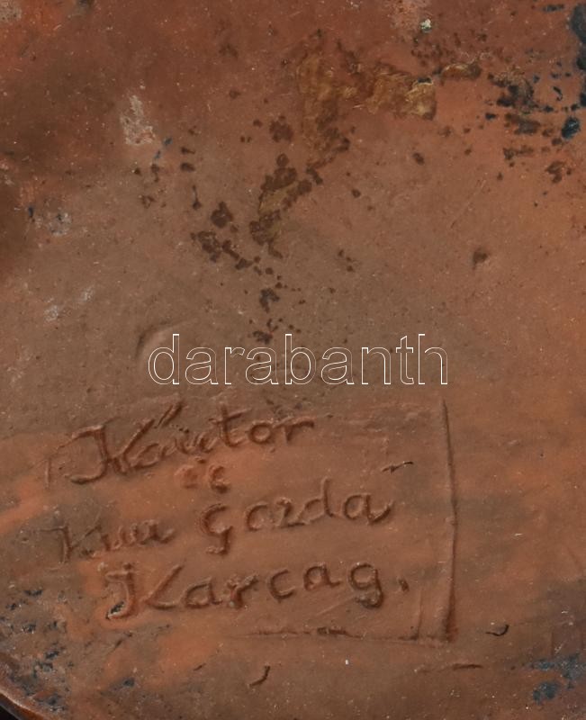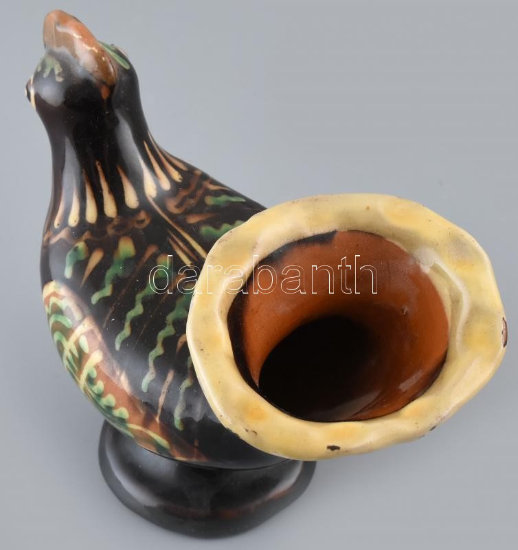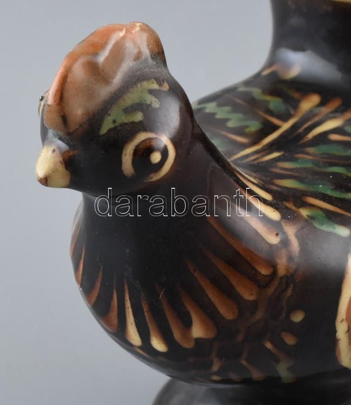 Kántor Karcag, festett, kerámia figurális kínáló, apró csorbákkal, jelzett, m: 15cm d: 20cm<a href="https://www.darabanth.com/hu/gyorsarveres/415/kategoriak~Porcelan-keramia-uveg/Keramiak~500005/Kantor-Karcag-festett-keramia-figuralis-kinalo-apro-cs