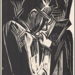 Karl Schmidt-Rottluff (1884-1976): Alfred Brust portréja. Fametszet, papír, jelzés nélkül, megjelent a Genius folyóirat, 3. évf., 2 sz. mellékleteként 1921-ben. Hátoldalán nyomtatva feliratozott. 28×20 cm / Karl Schmidt-Rottluff