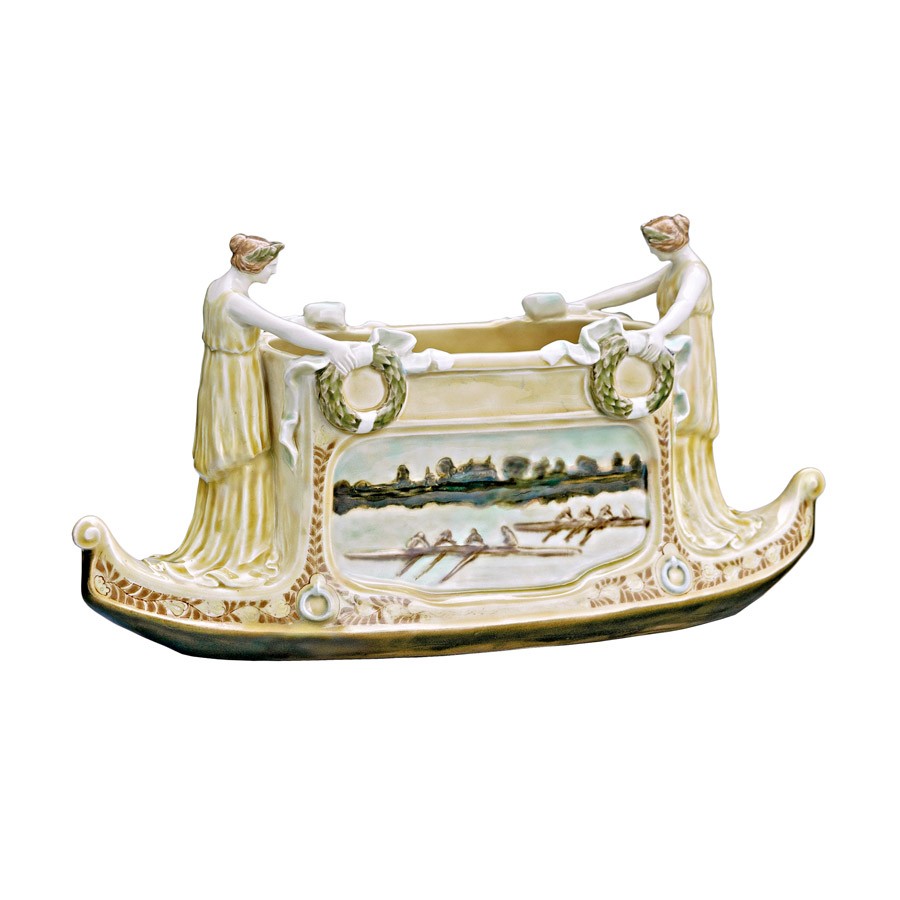 Kikiáltási ár: 55 000 FtKörmöcbánya, 1910 körül, mázas fajansz, hátoldalán jelzett, formaszám: 937, 29*13, 5 cm