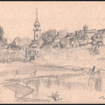 Katona Kiss Ferenc (1909-1995): Kurca part, Szentes. Ceruza, papír. Papírra kasírozva. Paszpartuban. 11×17,5 cm<a href="https://www.darabanth.com/hu/gyorsarveres/428/kategoriak~Festmenyek-es-grafikak/Festmenyek-es-grafikak~500001/Katona-Kiss-Ferenc-