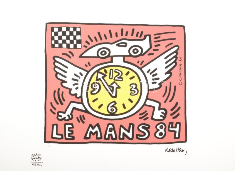 Keith Haring (1958-1990): Le Mans 84. Ofszet – lito papír, jelzett a nyomaton. Számozott: 121 /150. Keith Haring Foundation szárazpecséttel jelzett. Tanúsítvánnyal. Képméret 33×42 cm, Lapméret: 70×50 cm / Numbered, marked 70×50 cm<a href="https://ww