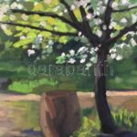 Kézdi-Kovács Lóránt (1897-1916): Rómaifürdő tanulmány. Olaj, karton, jelezve jobbra lent. A hátoldalán apja, Kézdi-Kovács László (1864-1942) által feliratozott. Kissé sérült. Proveniencia: Kézdi-Kovács László (1864-1942) festőművész és műkritikus gyűjtemé