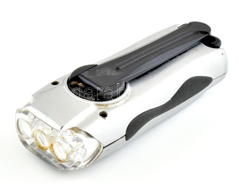 Kézi dinamós zseblámpa, kopásnyomokkal, nincs kipróbálva, h: 15 cm<a href="https://www.darabanth.com/hu/gyorsarveres/440/kategoriak~Mutargy-papirregiseg-egyeb/Bolhapiac~500014/Kezi-dinamos-zseblampa-kopasnyomokkal-nincs-kiprobalva-h-15-cm~II2894393/