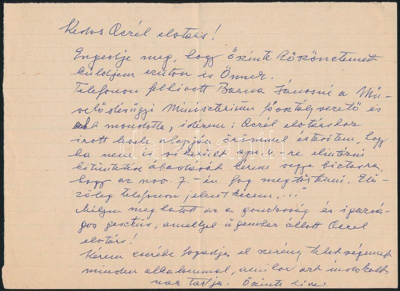 Kézzel írott levél Aczél György elvtársnak címezve<a href="https://www.darabanth.com/hu/gyorsarveres/412/kategoriak~Mutargy-papirregiseg-egyeb/Tortenelmi-dokumentumok-keziratok-erdekessegek~500019/Kezzel-irott-level-Aczel-Gyorgy-elvtarsnak-cimezve~I