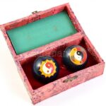 Kínai yin-yang mintás nyugi golyó pár, szövetborítású dobozban