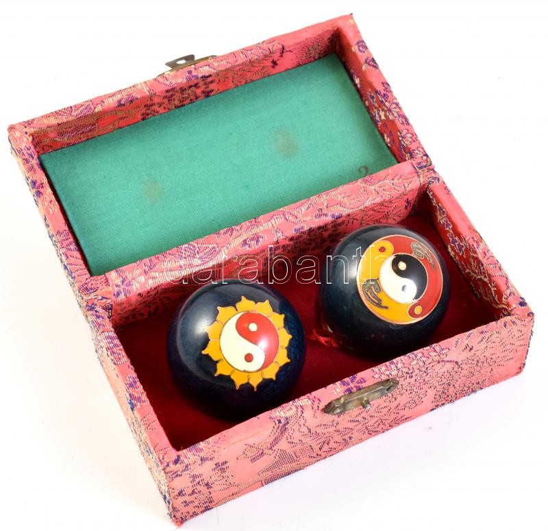 Kínai yin-yang mintás nyugi golyó pár, szövetborítású dobozban<a href="https://www.darabanth.com/hu/gyorsarveres/417/kategoriak~Mutargy-papirregiseg-egyeb/Bolhapiac~12/Kinai-yin-yang-mintas-nyugi-golyo-par-szovetboritasu-dobozban~II2629916/?utm_sour