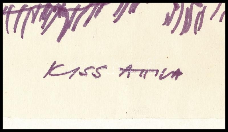 Kiss Attila (1941-): Herend, új lakótelep. Filctoll, papír, jelzett, papírra kasírozva, 12,5×30 cm