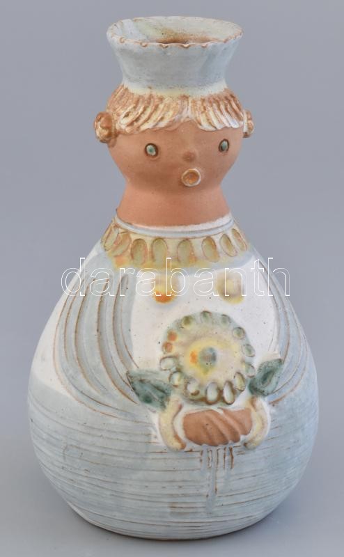 Kiss Roóz Ilona (1920-2010): Figurális váza, mázas kerámia, kézzel festett, jelzett, hibátlan, m: 17 cm<a href="https://www.darabanth.com/hu/gyorsarveres/412/kategoriak~Porcelan-keramia-uveg/Keramiak~500005/Kiss-Rooz-Ilona-1920-2010-Figuralis-vaza-m