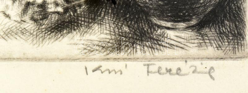 Kiss Terézia (1928-2016): Kislány és virág. Rézkarc, papír, jelzett, számozott (40/100). Üvegezett fakeretben. 15×19 cm<a href="https://www.darabanth.com/hu/gyorsarveres/437/kategoriak~Festmenyek-es-grafikak/Festmenyek-es-grafikak~500001/Kiss-Terezi