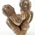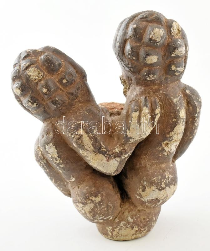 Kissi kőfaragás. Kétalakos sírfigura, korának megfelelő állapotban, Guinea, 16-19. század ?. m: 28,5 cm. A nyugat-afrikai Sierra Leonéban élő Kissi törzs tagjai általában úgy tartják, hogy egy ősi szellemet, az élők és az istenek közötti közvetítőt jelkép