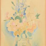 Kmetty János (1889-1975): Csendélet. Akvarell, ceruza, papír, jelezve jobbra lent (Kmetty 1943), Kmetty János autográf dedikációjával (Sch… Magdinak). Üvegezett fakeretben, 30×23 cm / János Kmetty (1889-1975): Still life. Watercolour on paper, signed lo