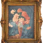 Komáromi-Kacz Endréné (1883-1954): Csendélet. Akvarell, papír. Jelzett. Dekoratív, üvegezett, sérült fakeretben. 49×38,5 cm<a href="https://www.darabanth.com/hu/gyorsarveres/431/kategoriak~Festmenyek-es-grafikak/Festmenyek-es-grafikak~5000002/Komaro