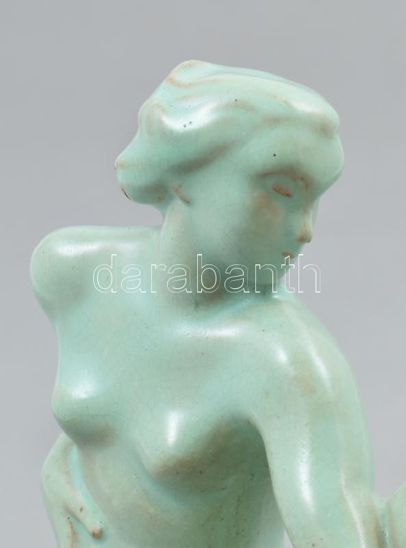 Komlós art deco türkíz akt szobor. Jelzett, minimális kopással 18 cm<a href="https://www.darabanth.com/hu/gyorsarveres/421/kategoriak~Porcelan-keramia-uveg/Porcelan~500006/Komlos-art-deco-turkiz-akt-szobor-Jelzett-minimalis-kopassal-18-cm~II2674306/