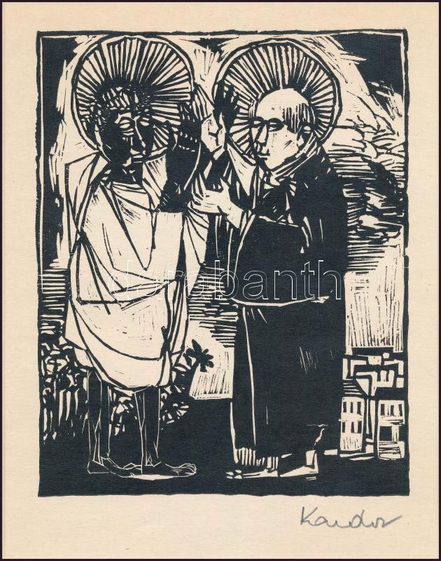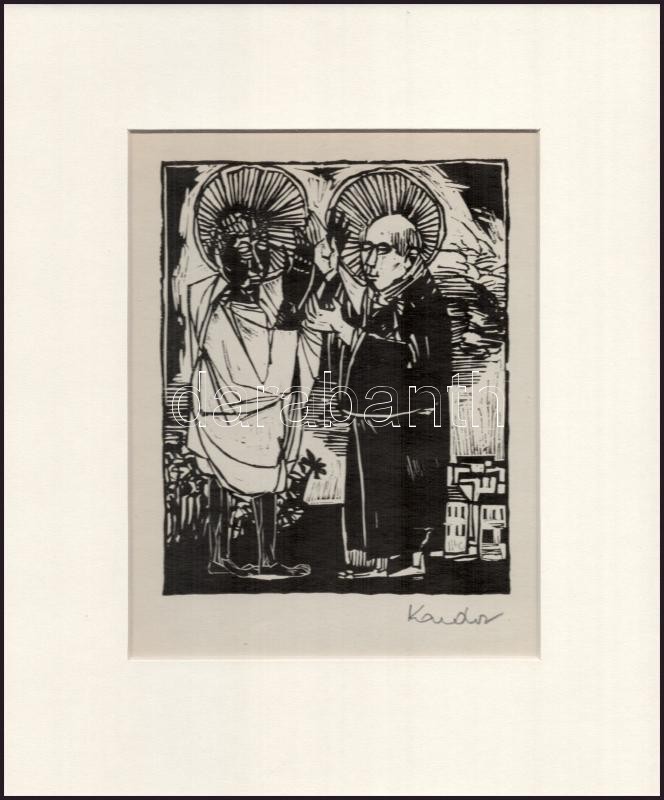 Kondor Béla (1931-1972): Szerzetes. Fametszet, papír, paszpartuban, utólagos jelzéssel, 14×11 cm<a href="https://www.darabanth.com/hu/gyorsarveres/415/kategoriak~Festmenyek-es-grafikak/Festmenyek-es-grafikak-jelzessel-jelzes-nelkul~500002/Kondor-Bel