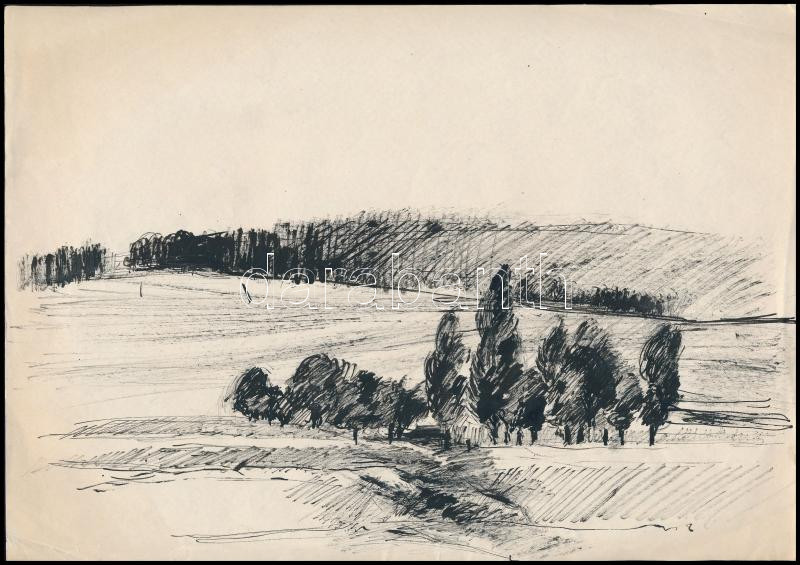 Konstantin László (1930- ): Táj (tanulmány). Tus, papír, jelzett a hátoldalon, 21×29,5 cm<a href="https://www.darabanth.com/hu/gyorsarveres/440/kategoriak~Festmenyek-es-grafikak/Festmenyek-es-grafikak~500001/Konstantin-Laszlo-1930-Taj-tanulmany-Tus-