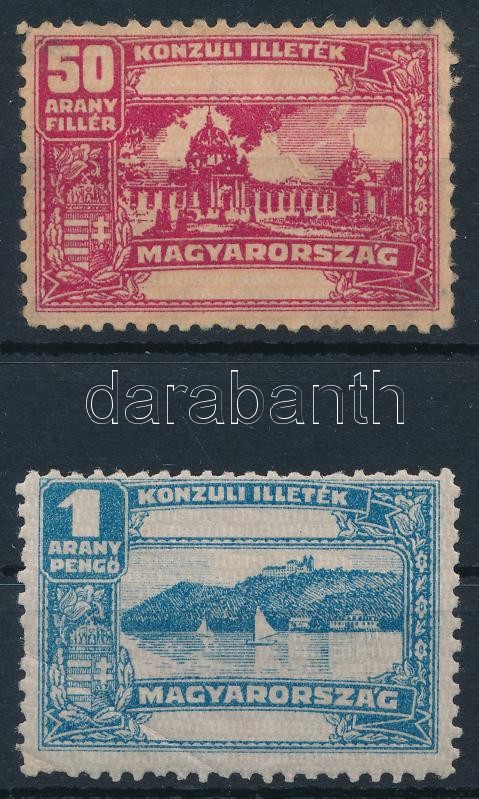 Konzuli illetékbélyeg 1 arany pengő (hajtott / folded) + 50 arany pengő