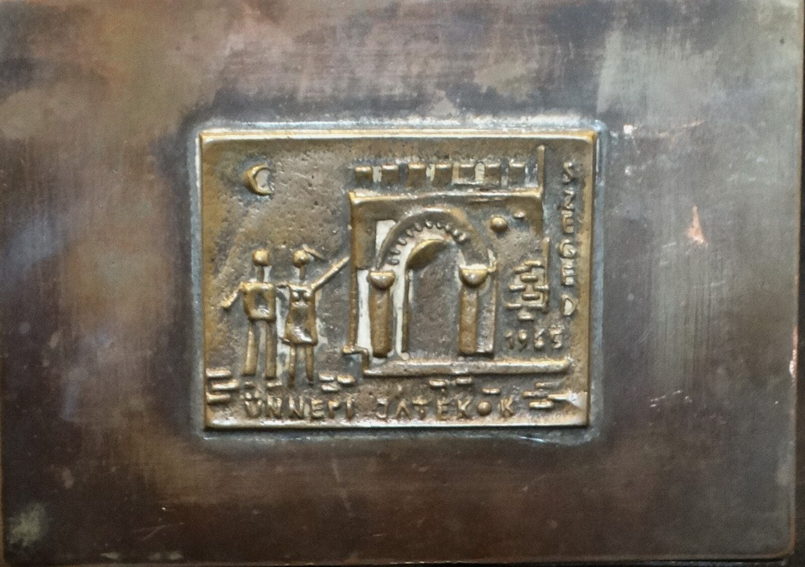 sárgaréz, bronz rátéttel, jl., 9 x 12,5 cm