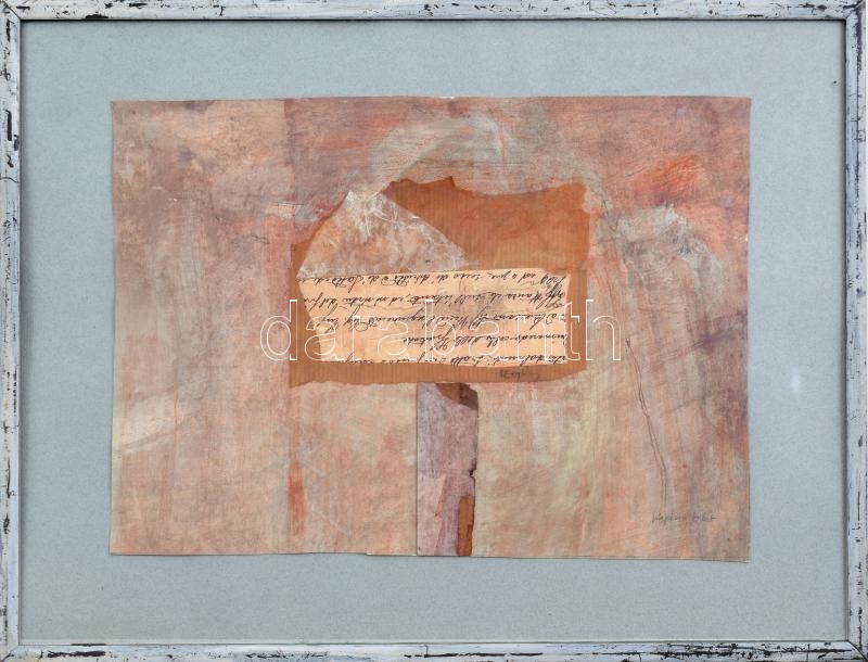 Kopócsy Judit (1947-): Homlokzat (Via Guilia). Vegyes technika, kollázs, papír, jelezve jobbra lent, hátoldalán autográf ajándékozási sorokkal, üvegezett keretben, 22×30 cm<a href="https://www.darabanth.com/hu/gyorsarveres/419/kategoriak~Festmenyek-