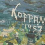 Koppány 1957 jelzéssel: Folyam. Olaj, rétegelt falemez. 20×36 cm Sérült. Kopott fakeretben.