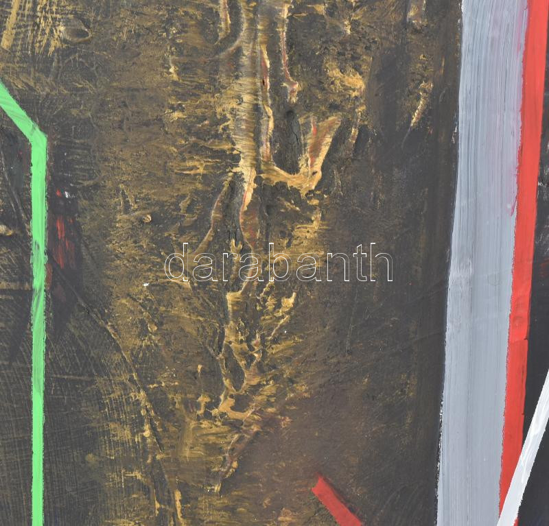 Koppány Attila (1947-): Közelmúlt. Akril, farost. Jelezve jobbra lent, a hátoldalon autográf felirattal. Fakeretben. 40×70 cm<a href="https://www.darabanth.com/hu/gyorsarveres/431/kategoriak~Festmenyek-es-grafikak/Festmenyek-es-grafikak~5000002/Kopp