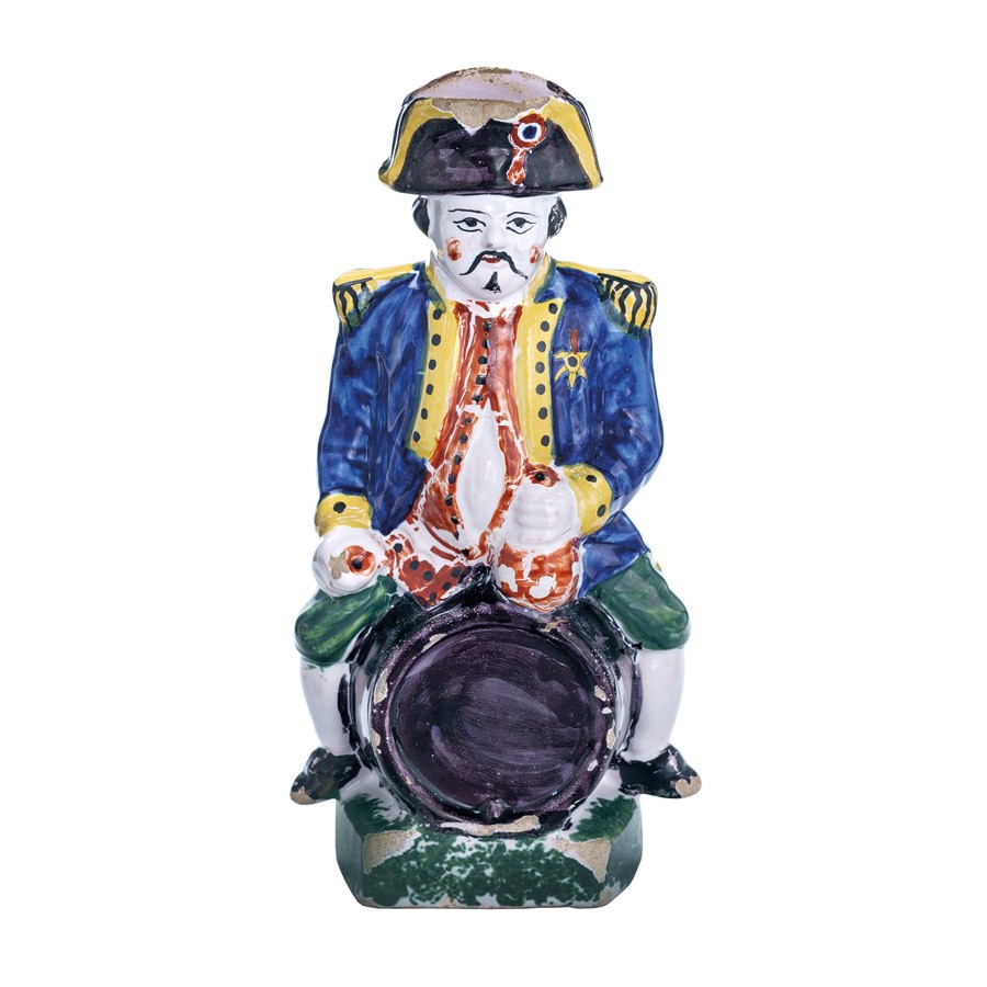 Kikiáltási ár: 24 000 FtZsolnay gyár, Pécs, 1880 körül, festett fehércserép, jelezve az alján öttornyos templom, TJM családi jel és felirattal, Zsolnay, Pécs, kék jellel, formaszám: 448, restaurált, 27, 5*16 cm
