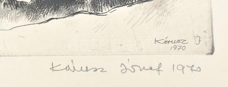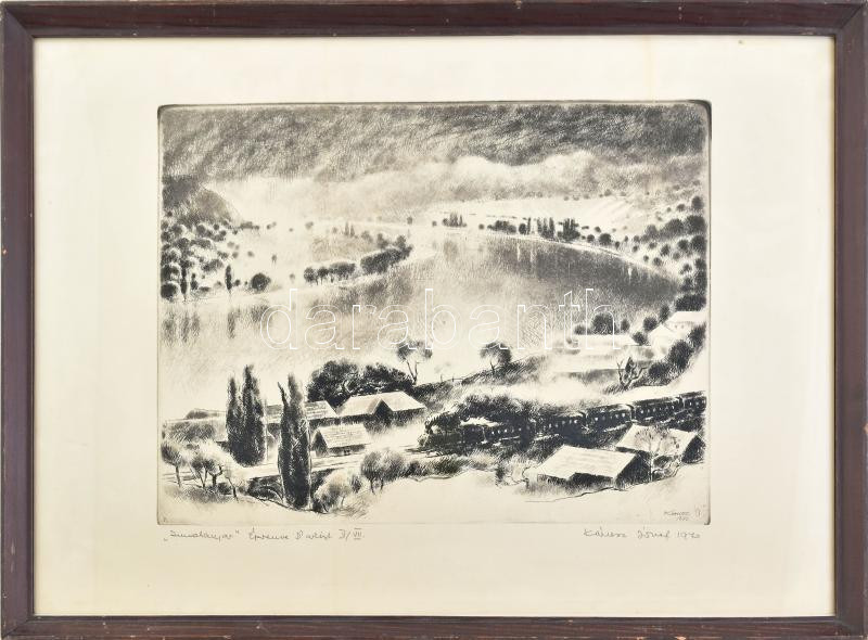 Kórusz József (1927-2010): Dunakanyar. Rézkarc, papír, jelzett, művészpéldány épreuve d’artist V/VII számozással. Üvegezett fakeretben, 29×39 cm<a href="https://www.darabanth.com/hu/gyorsarveres/432/kategoriak~Festmenyek-es-grafikak/Festmenyek-es-gr