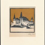 Kós Károly (1883-1977): Vajdahunyad. Linómetszet, papír, utólagos jelzéssel, paszpartuban, 11×11 cm