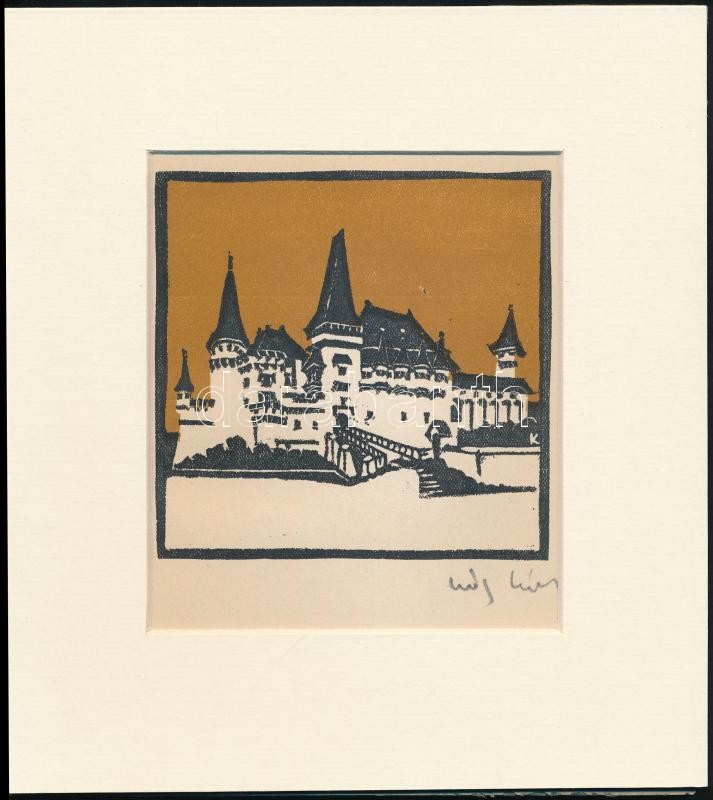 Kós Károly (1883-1977): Vajdahunyad. Linómetszet, papír, utólagos jelzéssel, paszpartuban, 11×11 cm<a href="https://www.darabanth.com/hu/gyorsarveres/414/kategoriak~Festmenyek-es-grafikak/Festmenyek-es-grafikak-jelzessel-jelzes-nelkul~500002/Kos-Kar