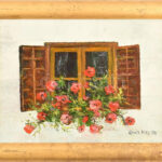 Kováts Nagy Ira (1921-2008): Őrségi ablak. Olaj, farost. Jelzett. Hátoldalán Kováts Nagy Ira autográf ajándékozási soraival. Proveniencia: Ury Ibolya (1924-2009), a Műcsarnok tudományos főmunkatársa hagyatékából. Fakeretben, 23×30