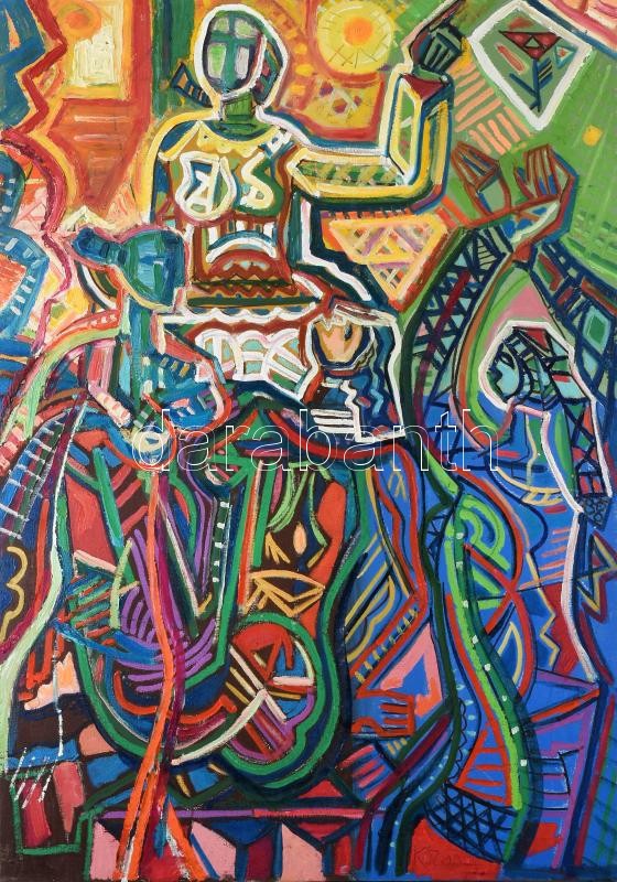 Kozma István (1937-2020): Három grácia (cím nélkül). Olaj, vászon, jelezve jobbra lent, 100×70 cm. Proveniencia: Banner Zoltán (1932-) művészettörténész, író gyűjteményéből / István Kozma (1937-2020): Three graces (untitled). Oil on canvas, signed. 100×70