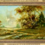 Kránitz Margit (1928-2000): Őszi táj. Olaj, farost, jelzett. Díszes, sérült fa keretben, 50×80 cm<a href="https://www.darabanth.com/hu/gyorsarveres/410/kategoriak~Festmenyek-es-grafikak/Festmenyek-es-grafikak~500001/Kranitz-Margit-1928-2000-Oszi-taj