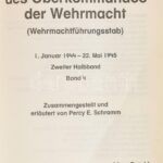 Kriegstagebuch des Oberkommandos der Wehrmacht (OKW.) Wehrmachtführungsstab. I-VIII. Bände. I-II Bände: 1940-1941. III-IV. Bände: 1942. V-VI. Bände: 1943. VII-VIII. Bände: 1944-1945. Hrsg.: Percy E. Schramm. [Augsburg], 2005, Bechtermünz.