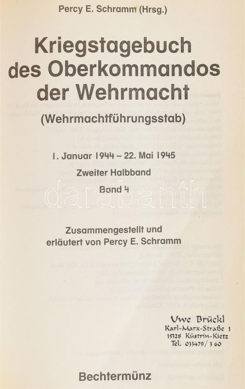 ![Kriegstagebuch des Oberkommandos der Wehrmacht (OKW.) Wehrmachtführungsstab. I-VIII. Bände. I-II Bände: 1940-1941. III-IV. Bände: 1942. V-VI. Bände: 1943. VII-VIII. Bände: 1944-1945. Hrsg.: Percy E. Schramm. [Augsburg], 2005, Bechtermünz.](https://mutargy.com/wp-content/uploads/2024/12/2598674.jpg)