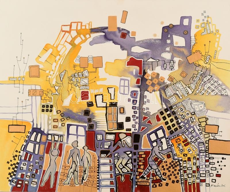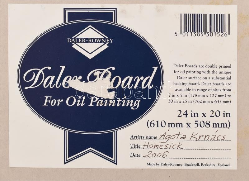 Krnács Ágota (1976-): Honvágy, 2006. Ecolin, színes tus, karton, jelezve jobbra lent, hátoldalán címkén feliratozott. 50×60 cm / Ágota Krnács (1976-): Homesick, 2006. Ecolin and ink on board, signed lower right, with description on the reverse. 50×60 cm<b